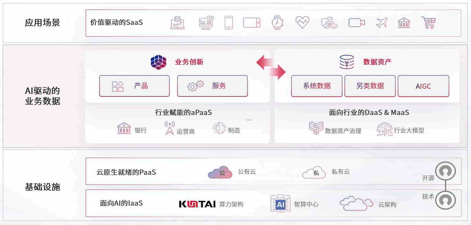 数字时代,,围绕企业数字化转型的关键要素,,355娱乐数码开创性的提出数云融合战略和技术体系框架,,,,着力在云原生、、、数字原生、、、、AI原生和信创产业上架构产品和服务能力,,,为处在不同数字化转型阶段的快消零售、、、汽车、、、、金融、、、医疗、、、政企、、、教育、、、运营商等行业客户提供泛在的敏捷IT能力和融合的数据驱动能力,,,,构建跨界融合创新的数字业务场景和新业务模式,,,助力企业级客户建立面向未来的核心能力和竞争优势,,全面推动社会的数字化、、智能化转型升级。。。。